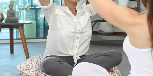 椅子に座ってもいいし、ゆるく足を組んで床に座ってもいいし、膝をついて座ってもいいです。ただ、安定していて、しばらくの間その姿勢でいられることを確認してください。